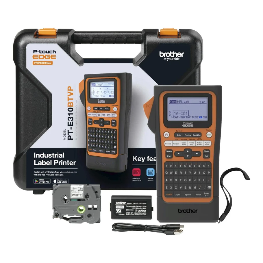 Designed to support contractors in large project applications, the P-touch EDGE 560BT is loaded with features to streamline labeling for techs. Format laminated labels and heat shrink tubes up to 24mm¹ for your applications in fewer steps using the included ruler and quick application keys. Store your databases and templates, intuitively serialize and create QR codes and linear barcodes straight on the printer itself to cut out wasted time from repetitive tasks. Rather work on your phone or computer? Get the job done from your mobile device thanks to Bluetooth® wireless connectivity and the Pro Label tool app. Or, connect and charge from your PC with a common USB-C® cable and print from the P-touch Editor software. Then, watch the auto-cutter print a strip of labels with half-cuts to make peeling and applying labels a cinch. Add in a secure hand strap to help prevent drops, and a long-lasting battery, and the PT-E560BT is the go-to tool for crushing tasks with the precision and efficiency of a seasoned pro.